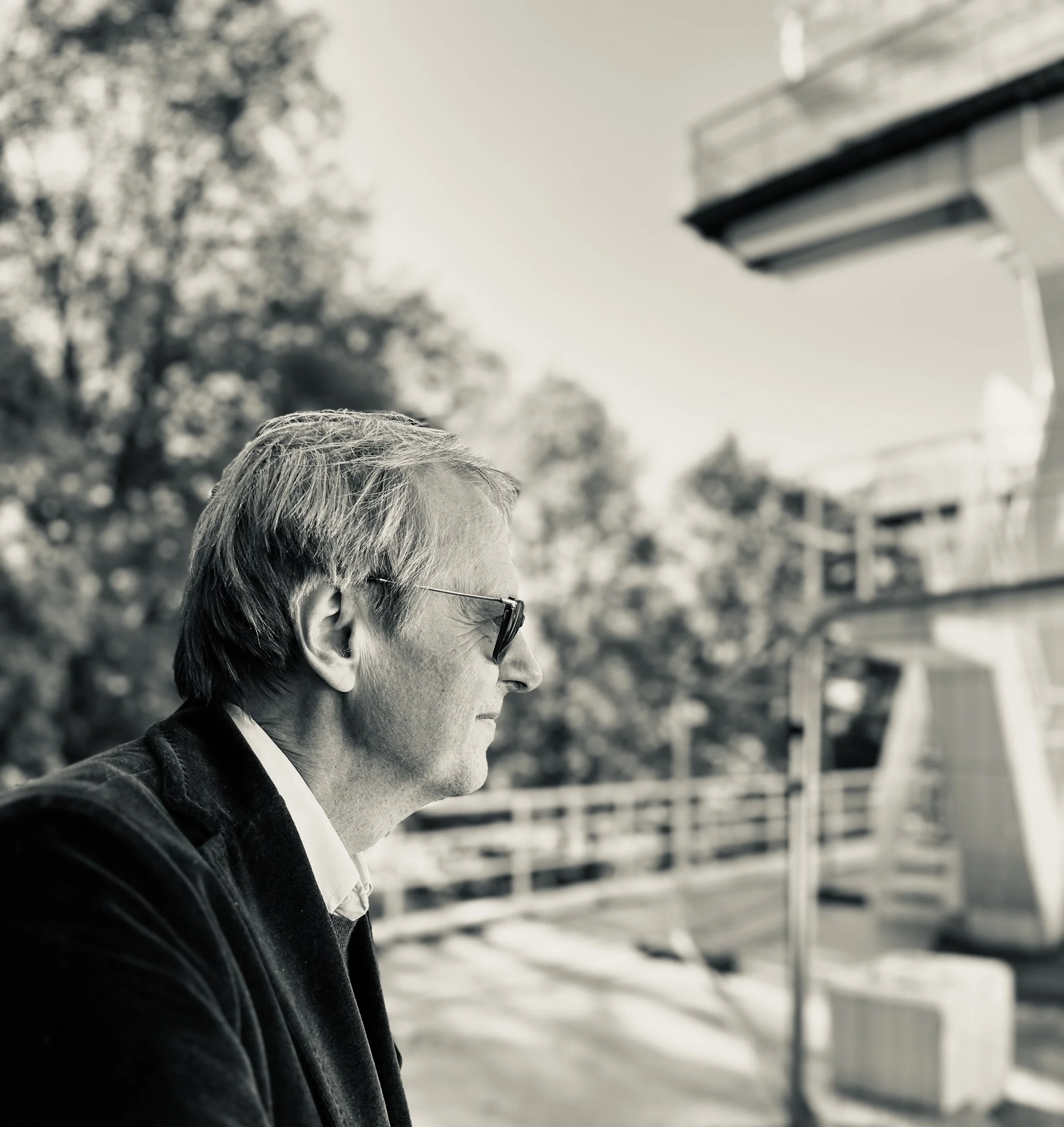 Lyse og pene Lars myser mot solen. Så kommer jeg på den gangen jeg så Lars på Solli. Jeg var full og hadde walkman med ‘Svett Smil’ på. Jeg kastet meg på ryggen på en fremmed gutt og pekte på Lars og ropte: ‘follow that man’. Minnet av oss tre oppover Bygdøy Allé lar jeg passere, og flere dukker opp. Slesk latter igjen, mens jeg fomler med telefonen. Hvor i all verden skulle solen stå igjen på bilder? Foran eller bak objektet? Jeg ser på stupetårnet. Svelger.